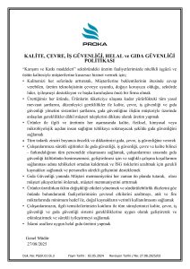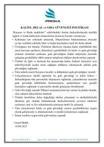 Bizim için ‘Güvenilir gıda üretimi’ temel şarttır. Hammadde satın alımından nihai ürün üretimine kadar her şeyi bu prensibe göre takip diyor, güncel mevzuatlar ile müşterilerilerimizi bilgilendirerek, üretim sürecini gerçekleştiriyoruz.