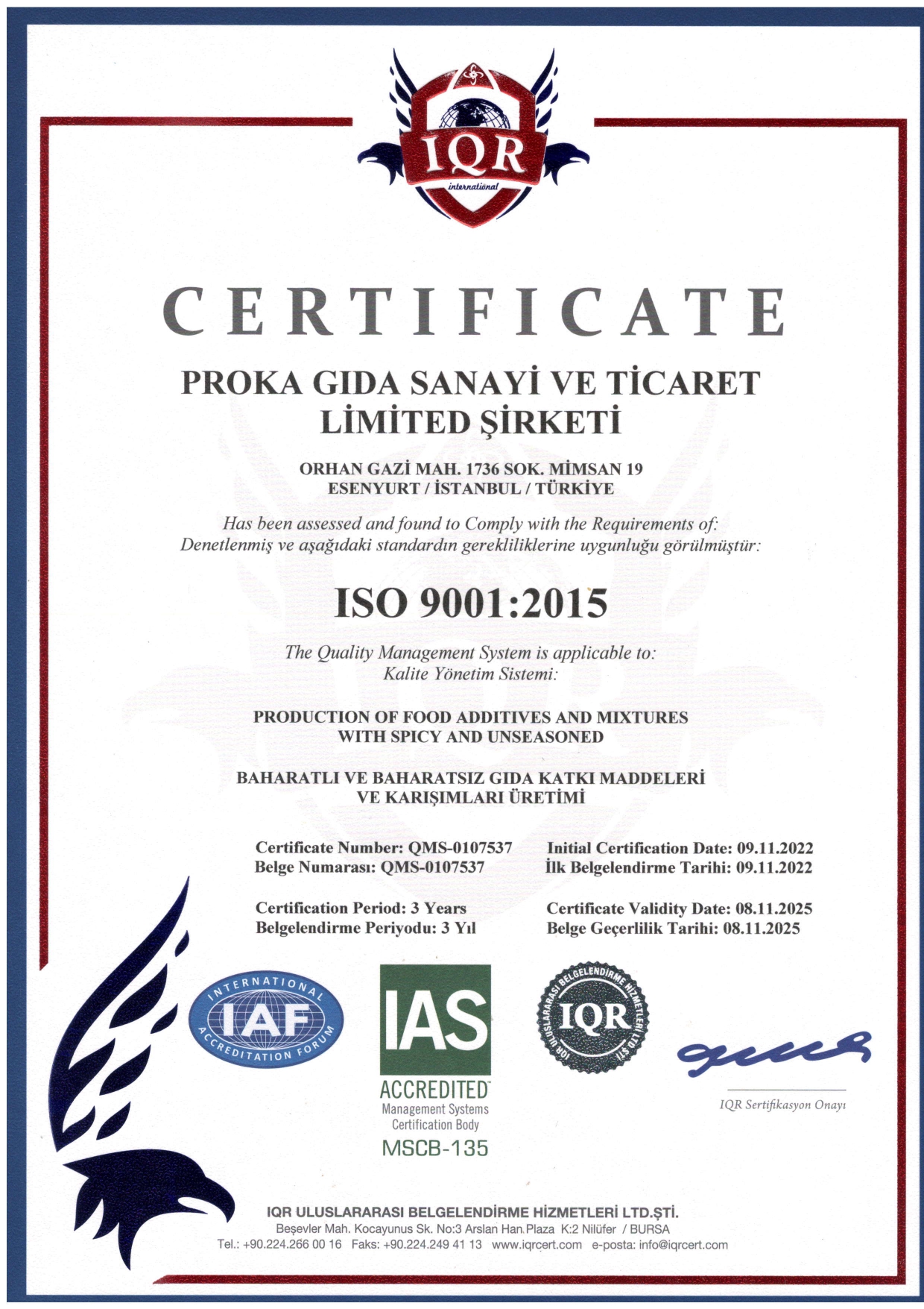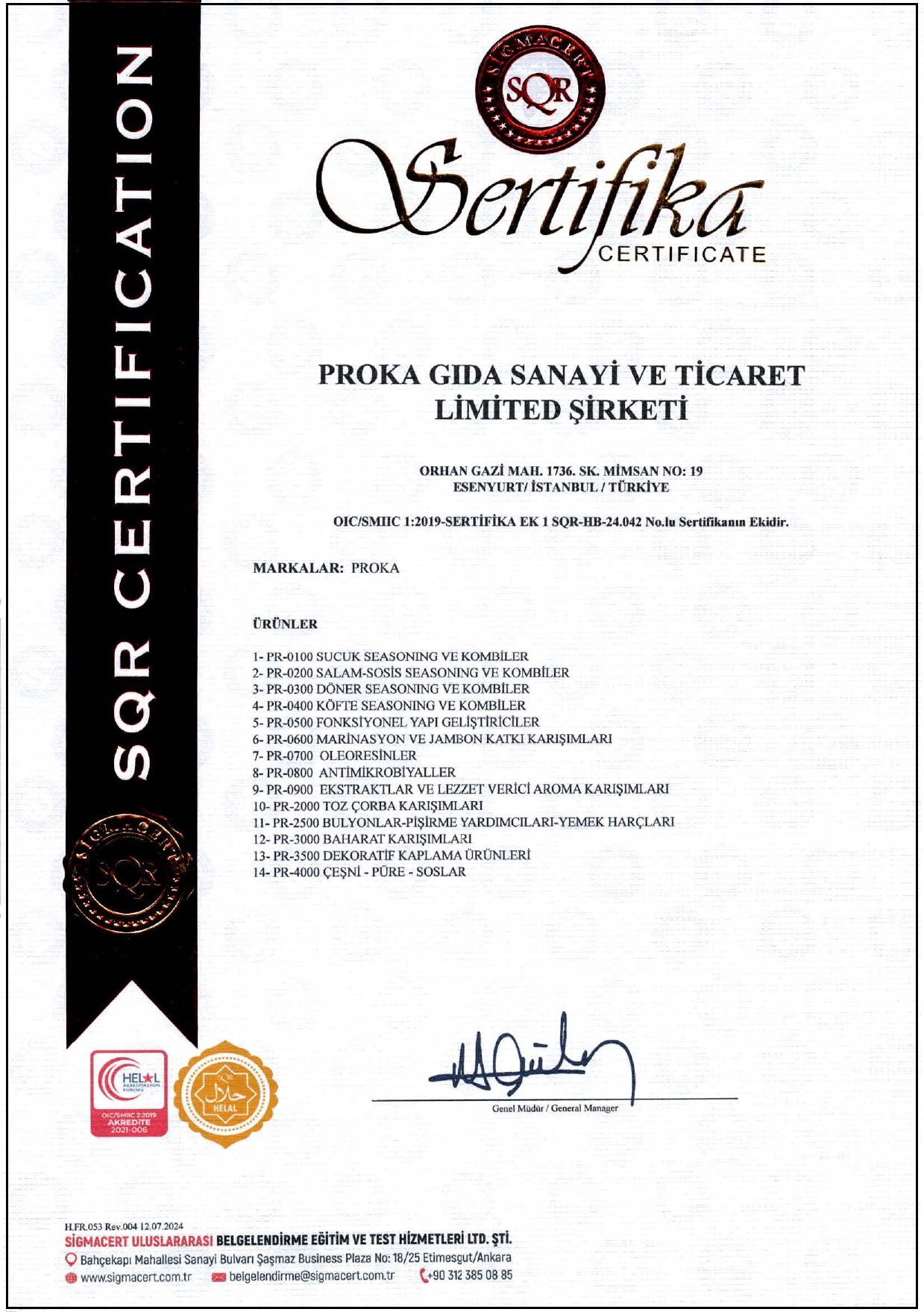 Proka Gıda olarak müşterilerimizin beklentilerine hızlı ve güvenilir bir şekilde cevap vermeyi ilke edindik. Sunmuş olduğumuz hizmetler için gerekli olan her türlü kalite belgemiz ve sertifikamız bulunmaktadır.